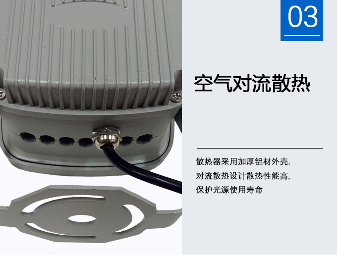 4、燈體加厚鋁材外殼,對流散熱設(shè)計散熱性能高,保護光源使用壽命
